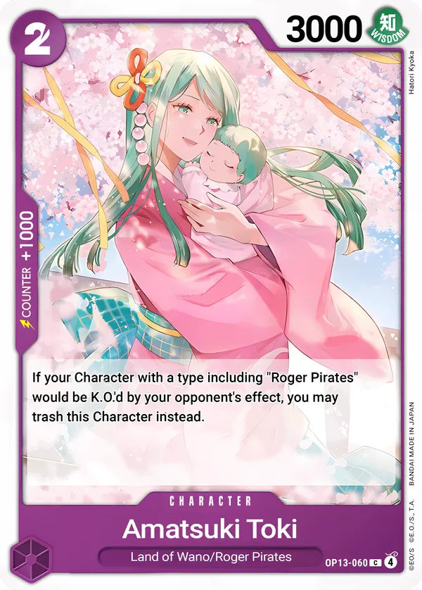 Effect: If your Character with a type including “Roger Pirates” would be K.O.’d by your opponent’s effect, you may trash this Character instead.