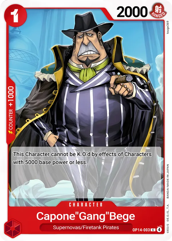Effect: This Character cannot be K.O.’d by effects of your opponent’s Characters with 5000 base power or less.