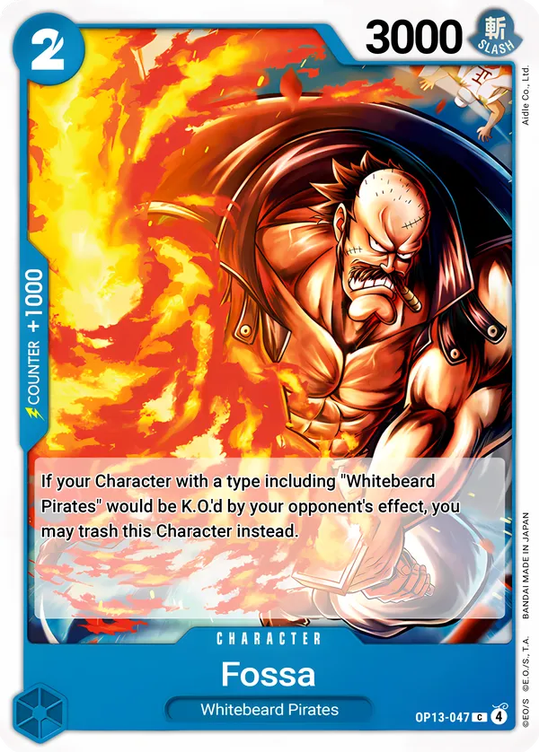 Effect: If your Character with a type including “Whitebeard Pirates” would be K.O.’d by your opponent’s effect, you may trash this Character instead.
