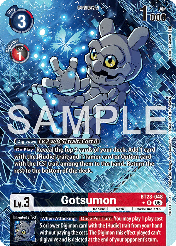 Effect: [On Play] Reveal the top 3 cards of your deck. Add 1 card with the [Hudie] trait and 1 Tamer card or Option card with the [CS] trait among them to the hand. Return the rest to the bottom of the deck.