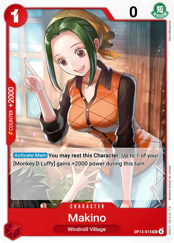 Effect: [Activate: Main] You may rest this Character: Up to 1 of your [Monkey.D.Luffy] cards gains +2000 power during this turn.