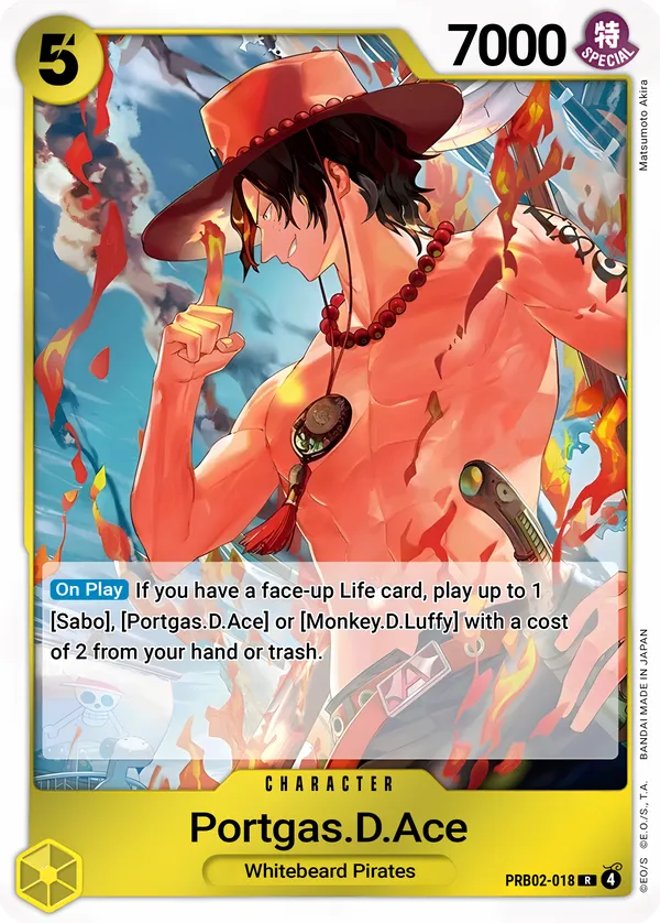 Ir al contenidoEffect: [On Play] If you have a face-up Life card, you may play up to 1 [Sabo], [Portgas.D.Ace], or [Monkey.D.Luffy] with a cost of 2 from your hand or trash.