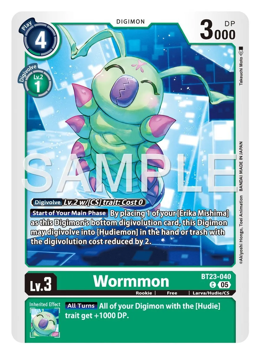 Effect: [Start of Your Main Phase] By placing 1 of your [Erika Mishima] as this Digimon’s bottom digivolution card, this Digimon may digivolve into [Hudiemon] in the hand or trash with the digivolution cost reduced by 2.